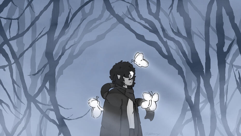 hi !! i'm blue, an artist who mostly uses watercolour and digital ! i typically make fanart, but I have a few ocs! i like to draw my dogs too,,to find information, click a button and scroll down!
